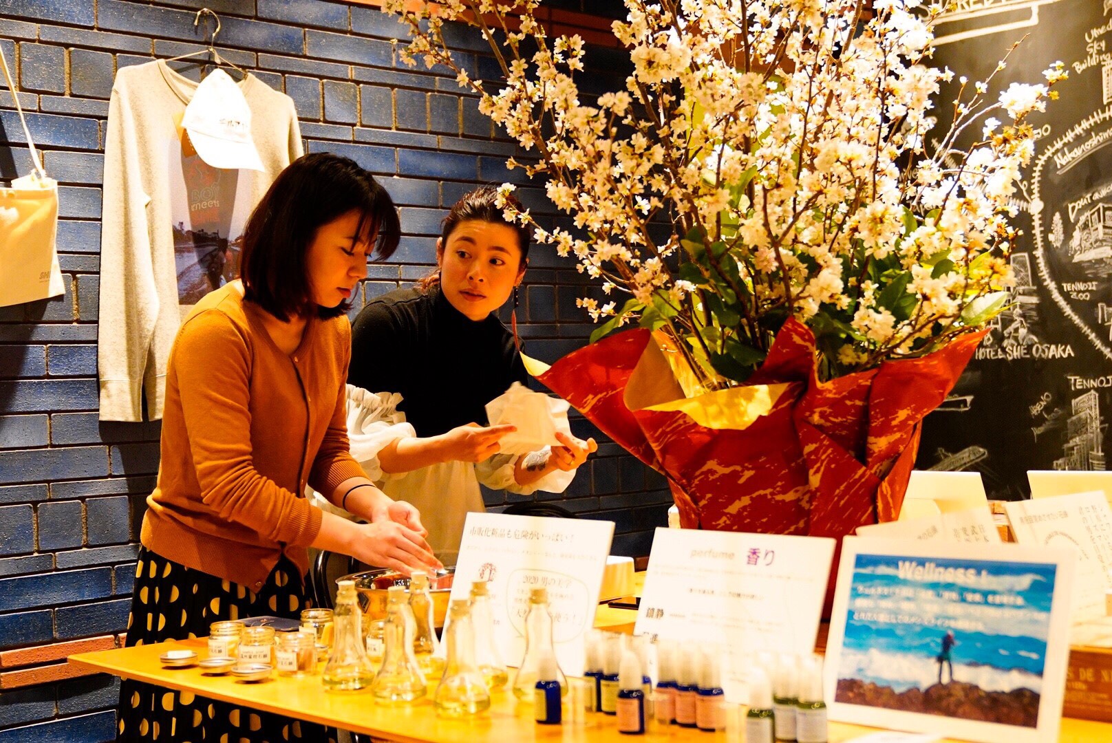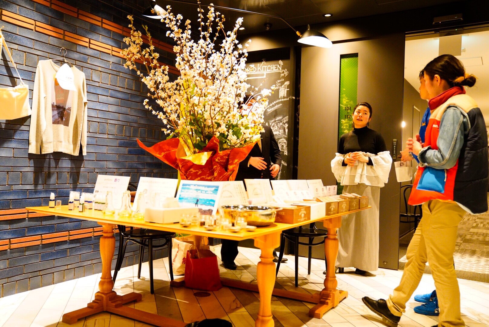 今回春も近かったので桜の木を生花してもらいました。コスメの販売スペースに置いて桜の木の存在感がイベントの特別感もあって良かったです。