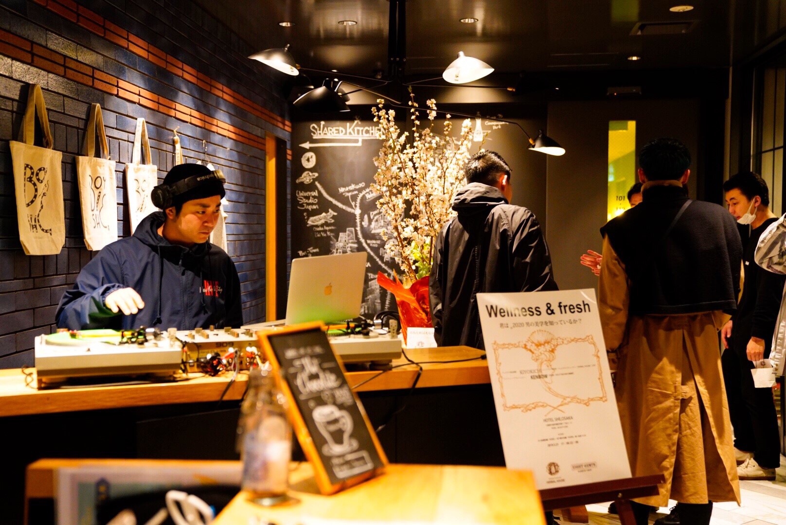 ホテルのフロアにはDJで音楽を担当して頂きバーカンにはピザ、クラフトビール、コーヒー(ほうじ茶ラテおススメ)etc