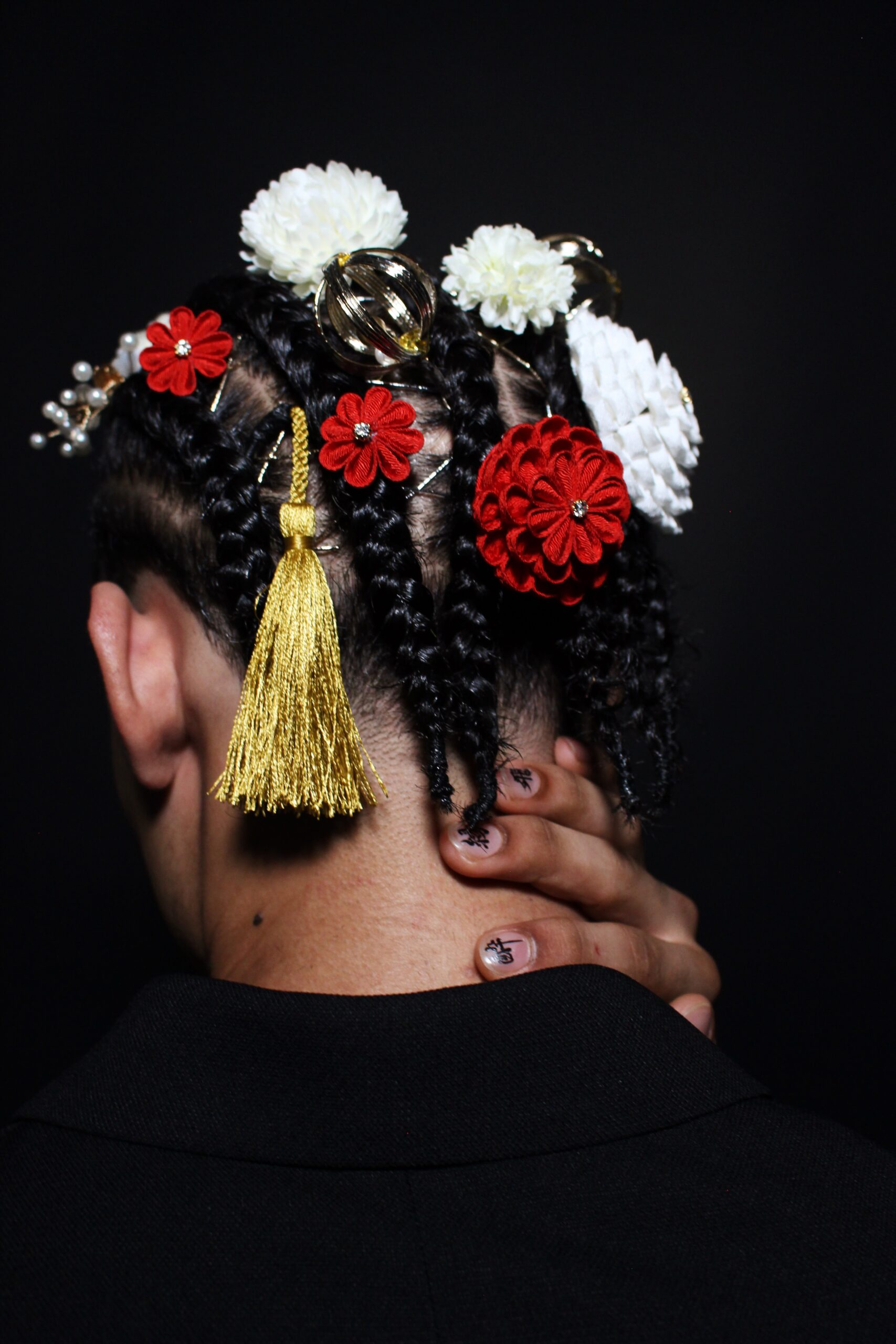 コーンロウスタイルに日本髪でつかう